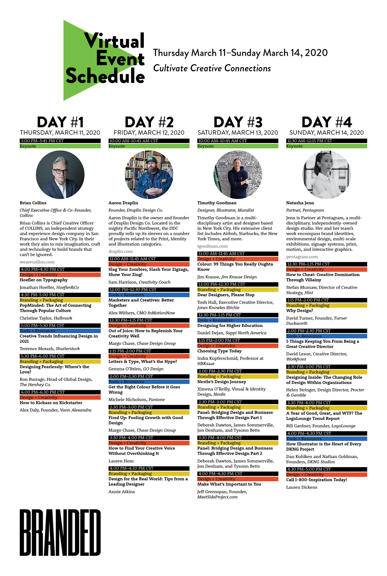 This conference schedule offers an easy-to-identify lineup of speakers, with colour-coding for ease of navigation.