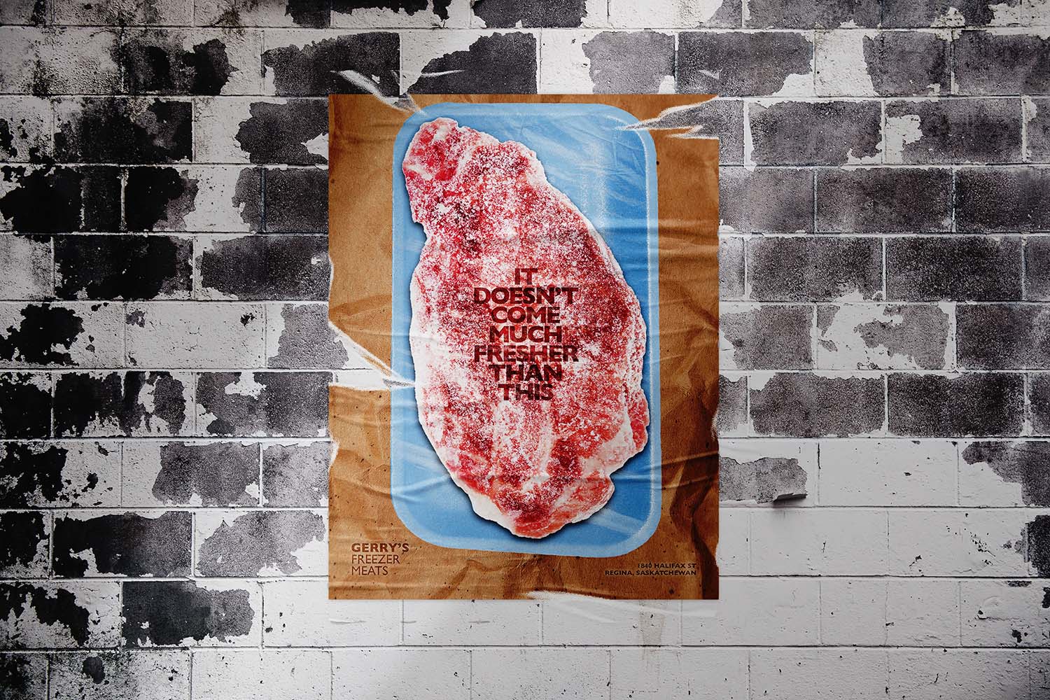 I created this poster for a fun design challenge: to create an advertisement for a local business. I chose Gerry's Freezer Meats after seeing this incredibly bold tagline in their store window.